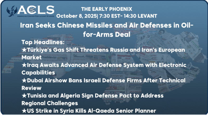 ★ Disclaimer: The Early Phoenix is a digest of various news sources compiled by the Early Phoenix team and edited by Rania Kisar. The items are curated, concise summaries of news items hyperlinked within each story. The items and summaries presented do not necessarily represent the views of the American Center for Levant Studies.