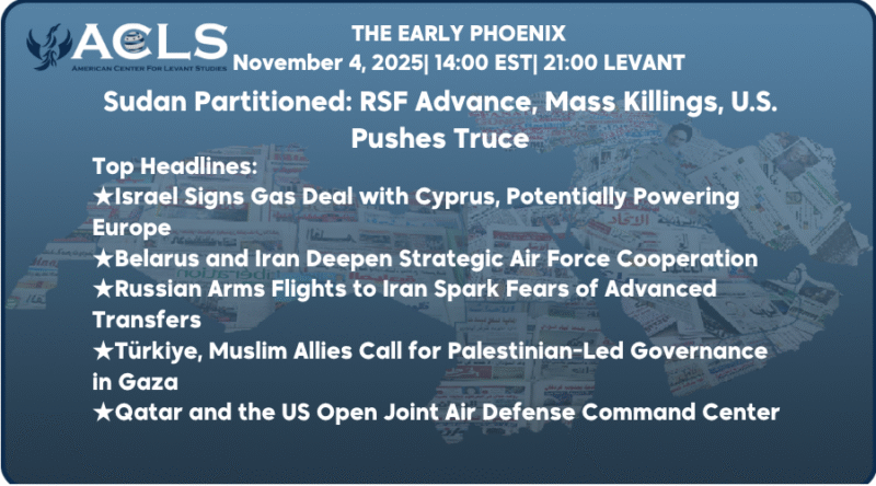 ★ Disclaimer: This publication is a digest of various news sources compiled by the Early Phoenix team and edited by Rania Kisar. The items are curated, concise summaries of news items hyperlinked within each story. The items and summaries presented do not necessarily represent the views of the American Center for Levant Studies.