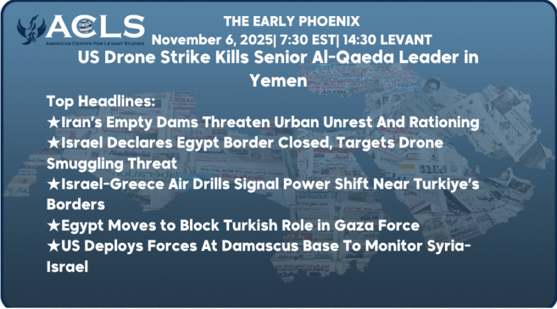 ★ Disclaimer: This publication is a digest of various news sources compiled by the Early Phoenix team and edited by Rania Kisar. The items are curated, concise summaries of news items hyperlinked within each story. The items and summaries presented do not necessarily represent the views of the American Center for Levant Studies.