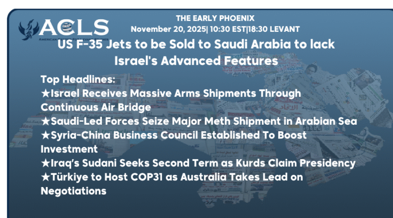 ★ Disclaimer: This publication is a digest of various news sources compiled by the Early Phoenix team and edited by Rania Kisar. The items are curated, concise summaries of news items hyperlinked within each story. The items and summaries presented do not necessarily represent the views of the American Center for Levant Studies.