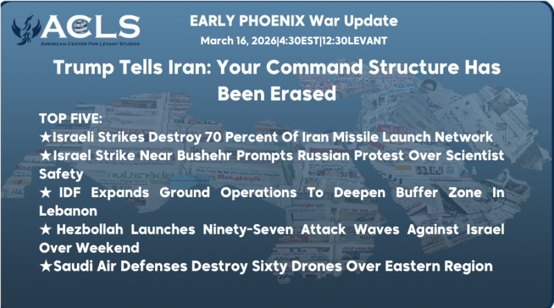 ★ Disclaimer: This publication is a digest of various news sources compiled by the Early Phoenix team and edited by Rania Kisar. The items are curated, concise summaries of news items hyperlinked within each story. The items and summaries presented do not necessarily represent the views of the American Center for Levant Studies.