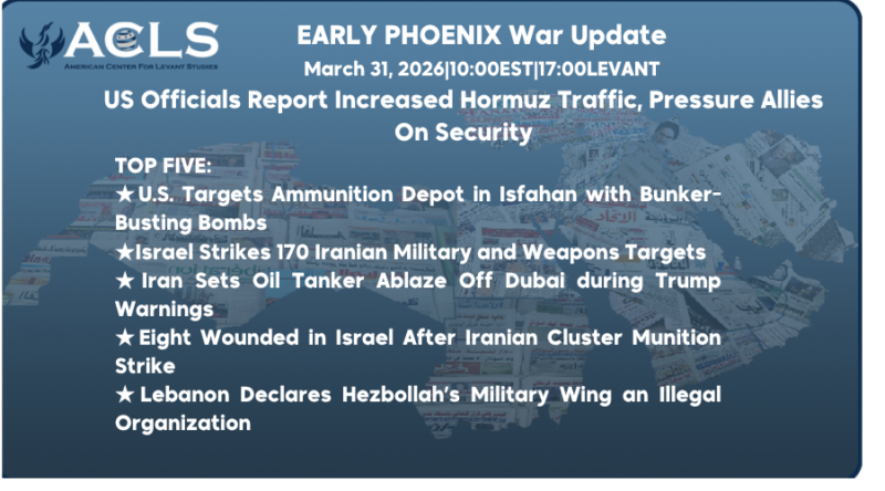 ★ Disclaimer: This publication is a digest of various news sources compiled by the Early Phoenix team and edited by Rania Kisar. The items are curated, concise summaries of news items hyperlinked within each story. The items and summaries presented do not necessarily represent the views of the American Center for Levant Studies.